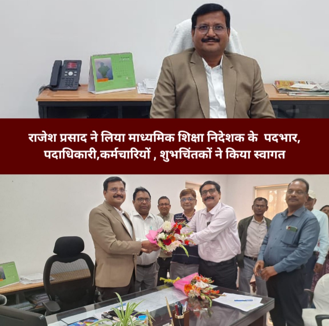 रांची: झारखंड राज्य में हाल ही में हुए बड़े पैमाने पर आईएएस अधिकारियों के ट्रांसफर और पोस्टिंग के बाद अधिकारी अपने नए कार्यस्थलों पर योगदान देने लगे हैं। इसी क्रम में, राज्य के नए माध्यमिक शिक्षा निदेशक राजेश प्रसाद ने आज अपना योगदान दिया। इस मौके पर उन्हें पदाधिकारी और कर्मचारियों द्वारा गुलदस्ता देकर गर्मजोशी से स्वागत किया गया। राजेश प्रसाद के योगदान के समय कई शुभचिंतक भी मौके पर मौजूद रहे, जिन्होंने उन्हें गुलदस्ता देकर उनके उज्जवल भविष्य की कामनाएं की।