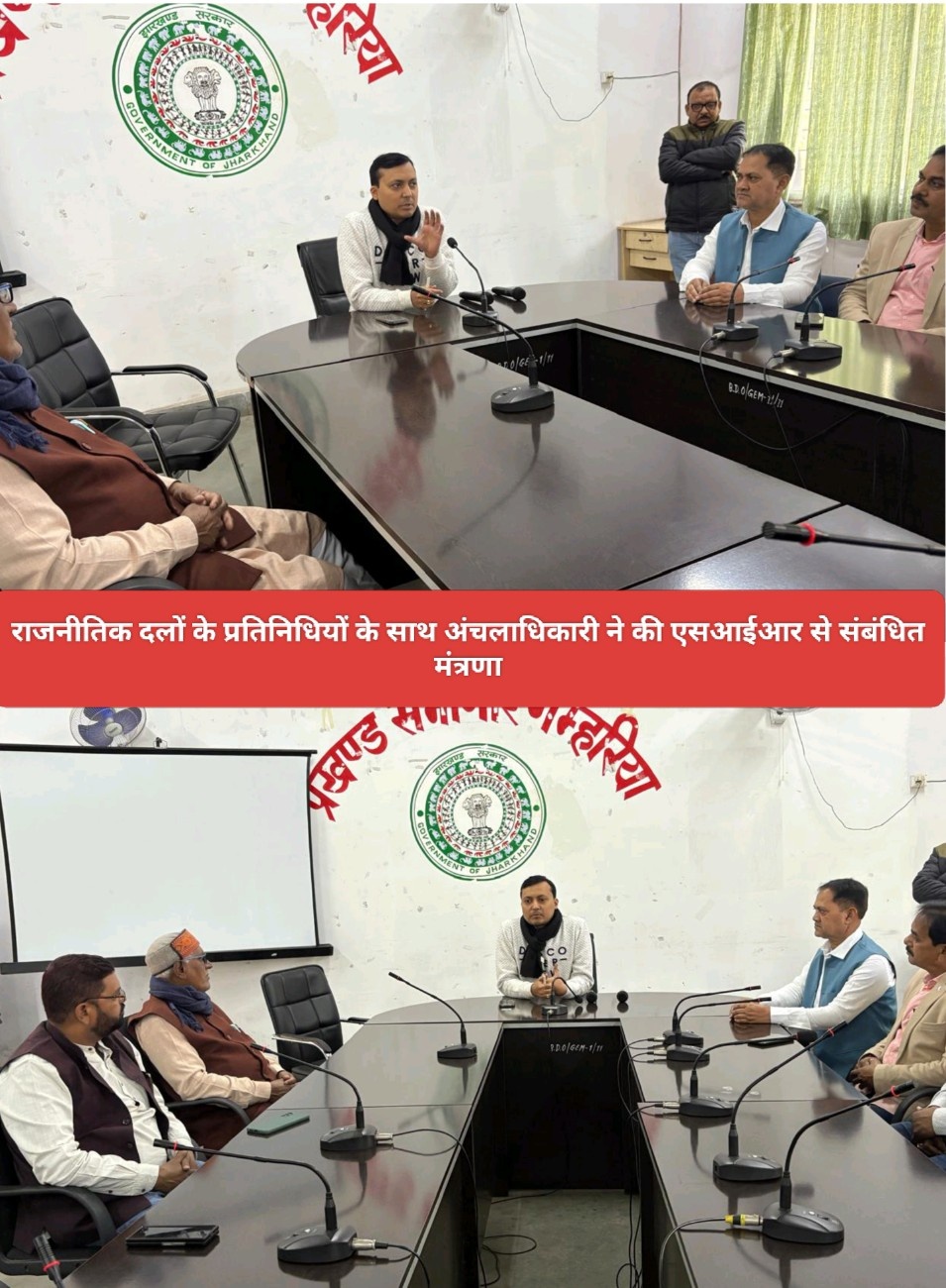 Saraikela (संजीव मेहता) : गुरुवार को प्रखंड सभागार, गम्हरिया में आदित्यपुर नगर निगम एवं गम्हरिया प्रखंड के सभी राजनितिक दलों के प्रखंड अध्यक्ष एवं नगर अध्यक्ष के साथ सहायक निर्वाचक निबंधन पदाधिकारी –सह- अंचल अधिकारी, गम्हरिया ने एक महत्वपूर्ण बैठक की. जिसमे वर्तमान मतदाताओं का 2003 के मतदाता सूची से मिलान करने के बारे में जानकारी उपलब्ध कराई गई तथा उनके द्वारा आवश्यक सहयोग की अपेक्षा की गई.