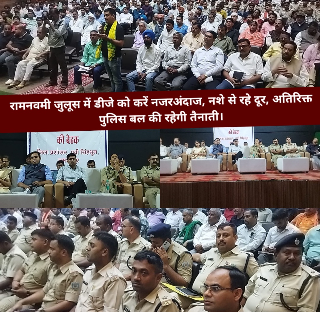 जमशेदपुर : रामनवमी एवं अन्य पर्व को लेकर जिला प्रशासन पूर्वी सिंहभूम की ओर से जिला स्तरीय शांति समिति की बैठक जमशेदपुर के सिदगोड़ा स्थित बिरसा मुंडा टाउन हॉल में आयोजित की गई। जिसमें जिले के सभी अखाड़ा समिति के सदस्य शामिल हुए, वही प्रशासन की ओर से जिले के डीसी, एसएसपी,सीटीएसपी, ग्रामीण एसपी, एसडीओ,ADM एवं अन्य अधिकारी मौजूद थे। इस दौरान अखाड़ा समिति के सदस्यों ने अपनी अपनी समस्याओं एवं सुझाव रखी।