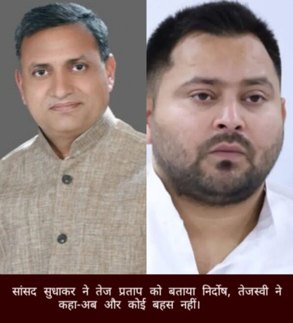 उन्होंने यह भी बोला कि पारिवारिक मुद्दों को राजनीतिक रूप से नहीं देखा जाना चाहिए और पार्टी को इस मामले में संतुलित रुख अपनाना चाहिए। सुधाकर सिंह ने कहा कि यह कोई बड़ी बात नहीं है तेज प्रताप ने कोई अनैतिक कार्य नहीं किया है । हिंदू रीति रिवाज़ के अनुसार दो- तीन शादियां होती रही है। आज भी बहुत जगह होती है यह गुनाह नहीं है। सुधाकर ने सांसद चिराग पासवान का उदाहरण देते हुए कहा कि उनके पिता पासवान जी ने भी दूसरी शादी की थी, जिनसे चिराग पासवान जी का जन्म हुआ है। यह कोई बड़ी बात नहीं है ,ऐसी स्थिति में लालू जी को एक पिता के तौर पर अपने बेटे के फैसले को स्वीकार करना चाहिए। वहीं, तेज प्रताप यादव के छोटे भाई और नेता प्रतिपक्ष तेजस्वी यादव ने इस मामले पर स्पष्ट रुख अपनाते हुए कहा कि लालू प्रसाद जी ने जो निर्णय लिया है, वह अंतिम है। उन्होंने कहा तेज प्रताप के निष्कासन को लेकर अब आगे कोई चर्चा या बहस करने की आवश्यकता नहीं है। तेजस्वी के इस बयान से यह साफ संकेत मिलता है कि पार्टी नेतृत्व अब इस मुद्दे को बंद मान रहा है ,और किसी प्रकार की सुलह की संभावना फिलहाल नहीं दिख रही है।