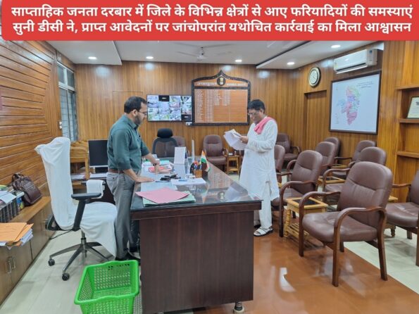 जनता दरबार में प्रमुख रूप से भूमि संबंधी विवाद, साईं नगर आदित्यपुर स्थित अतिक्रमित नाले को मुक्त कराने, निलंबित राशन डीलरों के मामलों में जांचोपरांत दोषियों पर कार्रवाई एवं निर्दोषों को बहाल करने, मुखिया द्वारा पंचायत में बिना कार्य कराए राशि भुगतान की जांच कराने, गम्हरिया क्षेत्र में नाला एवं सड़क अतिक्रमण, राशन कार्ड में नाम जुड़वाने जैसी समस्याएं प्रमुख रूप से सामने आईं. डीसी द्वारा सभी प्राप्त आवेदनों को संबंधित विभागों को अग्रसारित करते हुए त्वरित एवं निष्पक्ष जांचोपरांत यथोचित कार्रवाई सुनिश्चित करने के निर्देश दिए गए.