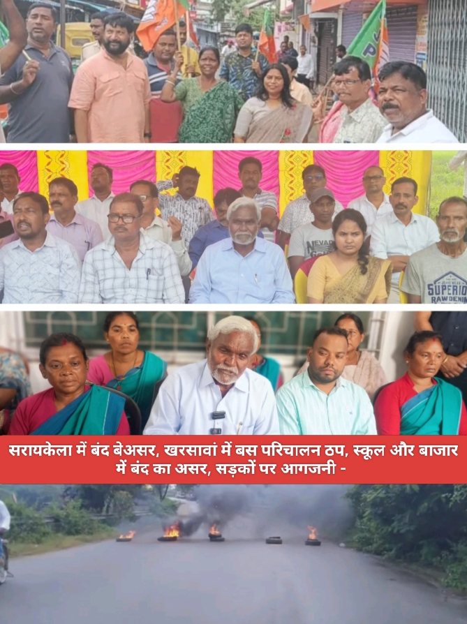 * पश्चिम सिंहभूम में बंद का असर – इस बंद को आदिवासी संगठनों और भारतीय जनता पार्टी का समर्थन मिला है. बताया जा रहा है कि बंद का व्यापक असर पश्चिमी सिंहभूम में देखा जा रहा है. बंद के कारण चाईबासा से रांची और जमशेदपुर जाने वाली बसों का परिचालन ठप है. चाईबासा शहर में निजी स्कूलों ने छुट्टी की घोषणा की है, जबकि कई सरकारी संस्थान भी आंशिक रूप से प्रभावित हैं. मुख्य बाजार, दुकानें और व्यावसायिक प्रतिष्ठान बंद हैं.