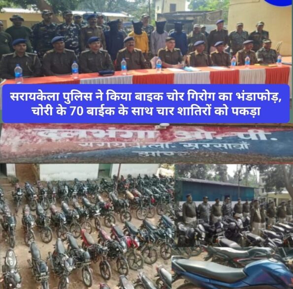 सरायकेला / ( संजीव मेहता) : सरायकेला पुलिस ने बाइक चोर गिरोग का भंडाफोड़ किया है. पुलिस ने चोरी के 70 बाईक के साथ चार शातिरों को पकड़ा है, जो जिले के दलभंगा ओपी क्षेत्र से इंटर डिस्ट्रिक्ट रैकेट चला रहे थे. इसका खुलासा जिले के एसपी मुकेश कुमार लुणायत ने किया है. जिनके द्वारा गठित एसआईटी ने दलभंगा ओपी क्षेत्र से अंतरजिला मोटरसाइकिल गिरोह का खुलासा करते हुए चार अभियुक्तों को गिरफ्तार करने में सफलता हासिल की है. इतना ही नहीं पुलिस ने इनके पास से चोरी के कुल 70 मोटरसाइकिल बरामद किए हैं जो अपने आप में एक रिकॉर्ड है. झारखंड में इससे पहले इतनी बड़ी रिकवरी कहीं नहीं हुई थी. बता दें कि इससे पूर्व अब तक की सबसे बड़ी रिकवरी जमशेदपुर में अगस्त 2022 में हुई थी. जहां तत्कालीन ग्रामीण एसपी मुकेश कुमार लुनायत ही थे जो वर्तमान में सरायकेला के एसपी है. यह रिकवरी कोवाली में हुई थी. जहां पुलिस ने चोरी के 67 मोटरसाइकिल रिकवर किए थे. इस तरह से देखा जाए तो सरायकेला एसपी ने अपना ही रिकॉर्ड तोड़ा है।