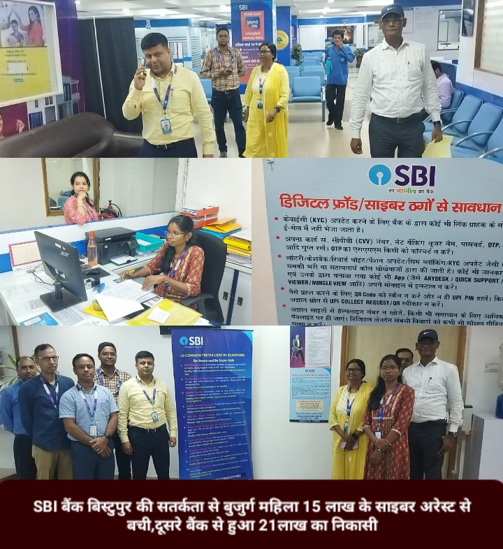 जिसे लेकर काउंटर में मौजूद सुमन और बसंती द्वारा पैसे निकालने की वजह पूछने पर पहले बेटे फिर मित्र को भेजने की बात कही,जिस पर शंका होने पर महिला को पास बुक लाने की बात कह लौटा दिया गया और इसकी जानकारी वरीय अधिकारियों को दी,जिसके बाद दूसरे दिन दोबारा महिला पहुंची और फॉर्म में RTGS अंकित की,यानी कि एक बैंक से दूसरे बैंक में पैसों का ट्रांसफर। जिसके बाद पूरा विभाग सकते में आ गया और वरीय अधिकारियों ने पैसों की निकासी रोकते हुए गहनता से पूछताछ की जिस पर बुजुर्ग ने रोते हुए पूरी सच्चाई बताई और कहा कि एक सफ्ताह में विभिन्न बैंकों में रखे 21 लाख रुपए RTGS कर ठगो को दे चुकी है। ठगो के द्वारा RBI का कर्मचारी कह उनके पैसों की जांच पड़ताल कर वापस लौटा देने की बात कही गई है और यह भी नसीहत दी कि इसकी जानकारी किसी को भी ना दे, साथ ही ठग मोबाइल को हैक कर लगातार निगरानी कर रहे थे। बहरहाल बैंक की सतर्कता से पहली बार किसी को ठगी का शिकार होने से बचा लिया गया,वही बैंक ने महिला का सहयोग करते हुए बिस्टुपुर साइबर थाने में शिकायत भी दर्ज कराई है। वहीं सहायक महाप्रबंधक शिवेंद्र कुमार ने शहर वासियों और अपने ग्राहकों से अपील की है कि साइबर अरेस्ट जैसा कुछ नहीं होता है बावजूद किसी को ऐसा महसूस होता है तो बैंक से सीधा संपर्क करे या टोल फ्री नंबर 1930,और 18001234 पर संपर्क कर ठगी के शिकार होने से बचा जा सकते है।
