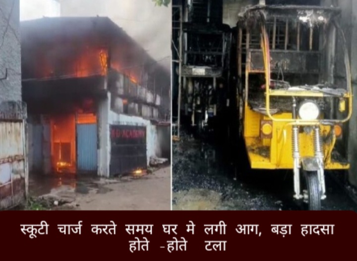 रांची : रांची के मेन रोड स्थित होटल केन के समीप बुधवार की सुबह एक आवास में जोरदार आग भड़क उठी। यह हादसा तब हुआ जब वहां एक इलेक्ट्रिक स्कूटी चार्ज की जा रही थी। चार्जिंग के दौरान अचानक चिंगारी उठी और देखते ही देखते आग तेजी से फैल गई। लपटों ने समीप खड़े ई-रिक्शा को भी जकड़ लिया, जिससे वह भी पूरी तरह जल गया।