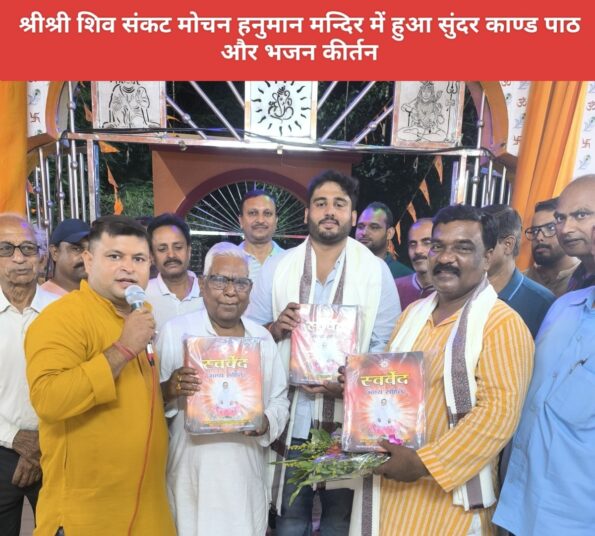 वहीं, विहंगम योग के प्रचारक एवं मंदिर कमिटी के मीडिया प्रभारी नीरज मिश्रा ने अतिथियों को विश्व का अद्वितीय आध्यात्मिक सद्ग्रंथ “स्वर्वेद” भेंट किया. इस दौरान मुकुंद पाण्डेय भजन मंडली के द्वारा सुंदरकांड एवं मंत्रमुग्ध कर देने वाले भजन प्रस्तुत किए गए, जिससे उपस्थित श्रोता लाभान्वित हुए. इस अवसर पर विहंगम योग के पुरोहित महावीर विद्यार्थी, देवेश कुमार, बबलू कुमार, अन्नू पाण्डेय, एस डी प्रसाद, एस के बर्मा, एम के सिंह, सतीश राय, करीम बख्श, राकेश सिन्हा, नवीन कुमार, विनोद वार्ष्णेय आदि उपस्थित थे.