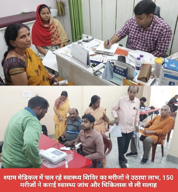 सुबह 10 बजे से शाम 3 बजे तक लगे स्वास्थ्य शिविर के के लिए 150 मरीजों ने निबंधन कराकर इस शिविर का लाभ उठाया. मरीजों की स्वास्थ्य जांच और चिकित्सकीय सलाह डॉ राघवेंद्र सिंह एमडी मेडिसीन सह डायबिटीज विशेषज्ञ ने मरीजों को दी. इस शिविर के संचालन में श्रीश्याम मेडिकल के प्रोपराइटर सुशील अग्रवाल और मिलन अग्रवाल ने अहम भूमिका निभाई.