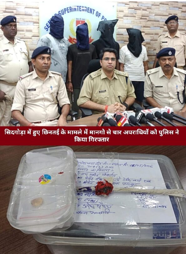 जमशेदपुर : पिछले दिनों जमशेदपुर के विभिन्न थाना क्षेत्रों में छिनतई की घटना घटित हुई थी, उसी क्रम में सिदगोड़ा में ही हुई छिनतई के मामले में पुलिस ने चार अपराधियों को गिरफ्तार किया है। प्रेस कॉन्फ्रेंस कर सिटी एसपी कुमार शिवाशीष ने जानकारी दी कि 18 मई के सुबह में सिदगोड़ा की एक महिला की एग्रिको मे बदमाशों ने गले से चेन छीन कर फरार हो गए थे।