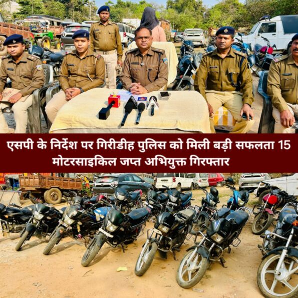 रांची: गिरिडीह पुलिस अधीक्षक डॉक्टर विमल कुमार के मिले गुप्त सूचना पर कार्रवाई करते हुए पुलिस ने 15 मोटरसाइकिल जप्त करते हुए बड़ी सफलता हासिल की है।