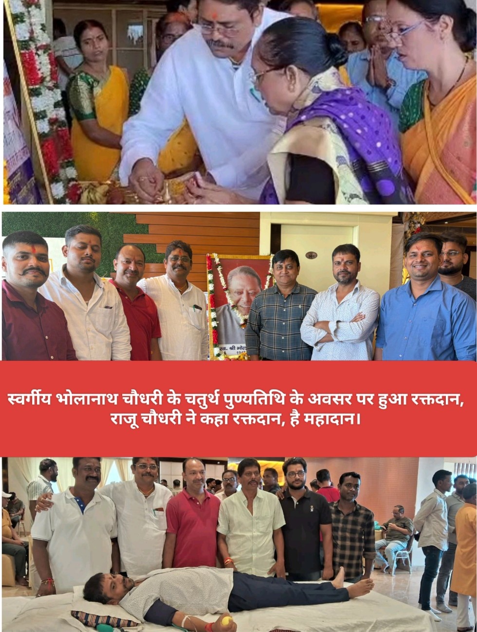 सरायकेला : सरायकेला खरसावां जिले के गम्हरिया निवासी स्वर्गीय भोलानाथ चौधरी की चतुर्थ पुण्यतिथि के अवसर पर रविवार को होटल पारस हाइट में एक विशेष रक्तदान शिविर का आयोजन किया गया। इस शिविर का उद्देश्य दिवंगत भोलानाथ चौधरी की पुण्यतिथि को समाज सेवा के रूप में यादगार रहता। आयोजन में बड़ी संख्या में लोगों ने बढ़-चढ़कर हिस्सा लिया और मानवता की सेवा के लिए अपना रक्तदान किया।