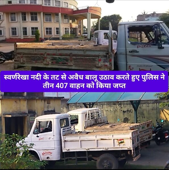 जमशेदपुर : जमशेदपुर के बिरसानगर थाना क्षेत्र में इन दिनों अवैध बालू के उत्खनन के कारोबार खुलेआम बेधड़क बे रोक-टोक के चल रहे हैं। जिसका उदाहरण बिरसानगर थाना क्षेत्र के मोहरदा जलापूर्ति के समीप स्वर्णरेखा नदी के तट पर अवैध बालू खनन का मामला सामने आया है। बिरसानगर पुलिस द्वारा कभी कभार कार्रवाई दिखाने के लिए कार्रवाई कर अपनी पीठ थपथपा लिया जाता है। जिसका उदाहरण अवैध बालू लदे तीन 407 ट्रकों को जब्त कर कार्रवाई किया गया हैं। पुलिस के पहुंचते ही अवैध खनन में शामिल सभी लोग मौके से फरार हो गए। जानकारी के अनुसार, स्वर्णरेखा नदी से अवैध रूप से बालू उठाव की लगातार शिकायत किए जा रहे थे। शिकायत पर पुलिस ने विशेष छापेमारी अभियान चलाया। छापेमारी के दौरान तीन 407 ट्रकों को बालू लोड करते हुए पकड़ा गया है। पुलिस को देखते ही ट्रक चालक और मजदूर मौके से भाग निकले। पुलिस ने जब्त ट्रकों को थाना परिसर में लाकर खड़ा किया है। इस मामले में पुलिस आगे की जांच में जुट गई है। ट्रकों के नंबर और मालिकों की पहचान कर उनके खिलाफ कानूनी कार्रवाई की तैयारी की जा रही है। पुलिस यह भी जांच कर रही है कि अवैध बालू खनन के पीछे कौन-कौन लोग शामिल हैं और यह बालू कहां ले जाया जा रहा था।