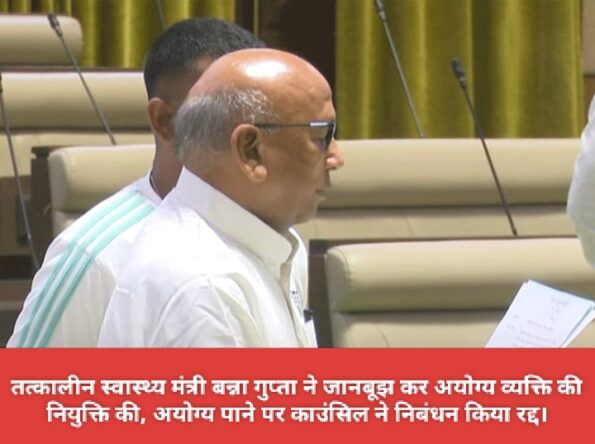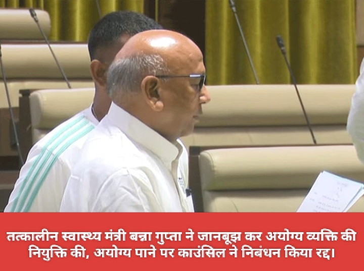 Saraikela (संजीव मेहता) : झारखंड सरकार के स्वास्थ्य, चिकित्सा शिक्षा एवं परिवार कल्याण विभाग ने सोमवार को विधानसभा में स्वीकार किया कि तत्कालीन विभागीय मंत्री बन्ना गुप्ता द्वारा जान-बूझकर राहुल कुमार नामक गैर सरकारी व्यक्ति को झारखंड स्टेट फार्मेंसी काउंसिल का प्रभारी निबंधक सह सचिव नियुक्त कर दिया, जो इस पद के लिए अयोग्य थे.
