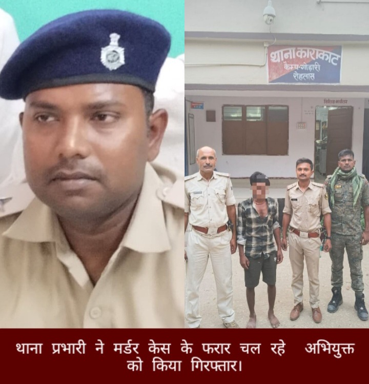 काराकाट ( रोहतास ) : रोहतास जिले के काराकाट थाना क्षेत्र में 11 अप्रैल 2023 को हुए मर्डर केस के फरार चल रहे अभियुक्त धनजी मुसहर पिता दीन दयाल मुसहर को काराकाट बाल से कल शाम को थाना प्रभारी भागीरथ कुमार ने गिरफ्तार कर लिया है। काराकाट थाना कांड संख्या 363/23 दर्ज किया गया था , जिसमें भारतीय दंड संहिता की धारा 302, 201 एवं 34 के अंतर्गत मामला अंकित हुआ है।