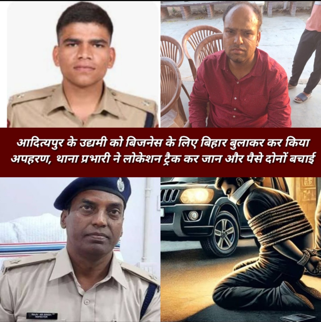 इसके बाद उनके पिता को फोन कर 30 लाख की रंगदारी मांगी. यह घटना शुक्रवार की है. देर रात आदित्यपुर पुलिस को पुलिस अधीक्षक मुकेश कुमार लुनायत द्वारा वादी का मोबाइल नंबर दिया गया और उद्यमी के पिता द्वारा आदित्यपुर थाना को सूचना दी गई . सूचना मिलते ही आदित्यपुर थाना प्रभारी ने गंभीरता से लेते और सक्रियता दिखाते हुए लोकेशन ट्रैक कर पूरे मामले की जानकारी बिहार के थाना को दी और पल-पल की जानकारी लेते-देेते रहे। जिसके आधार पर उद्यमी को सकुशल बरामद किया गया । पैसा देने वाले ही उद्यमी के घर वाले थे उन्हें रोक दिया गया।