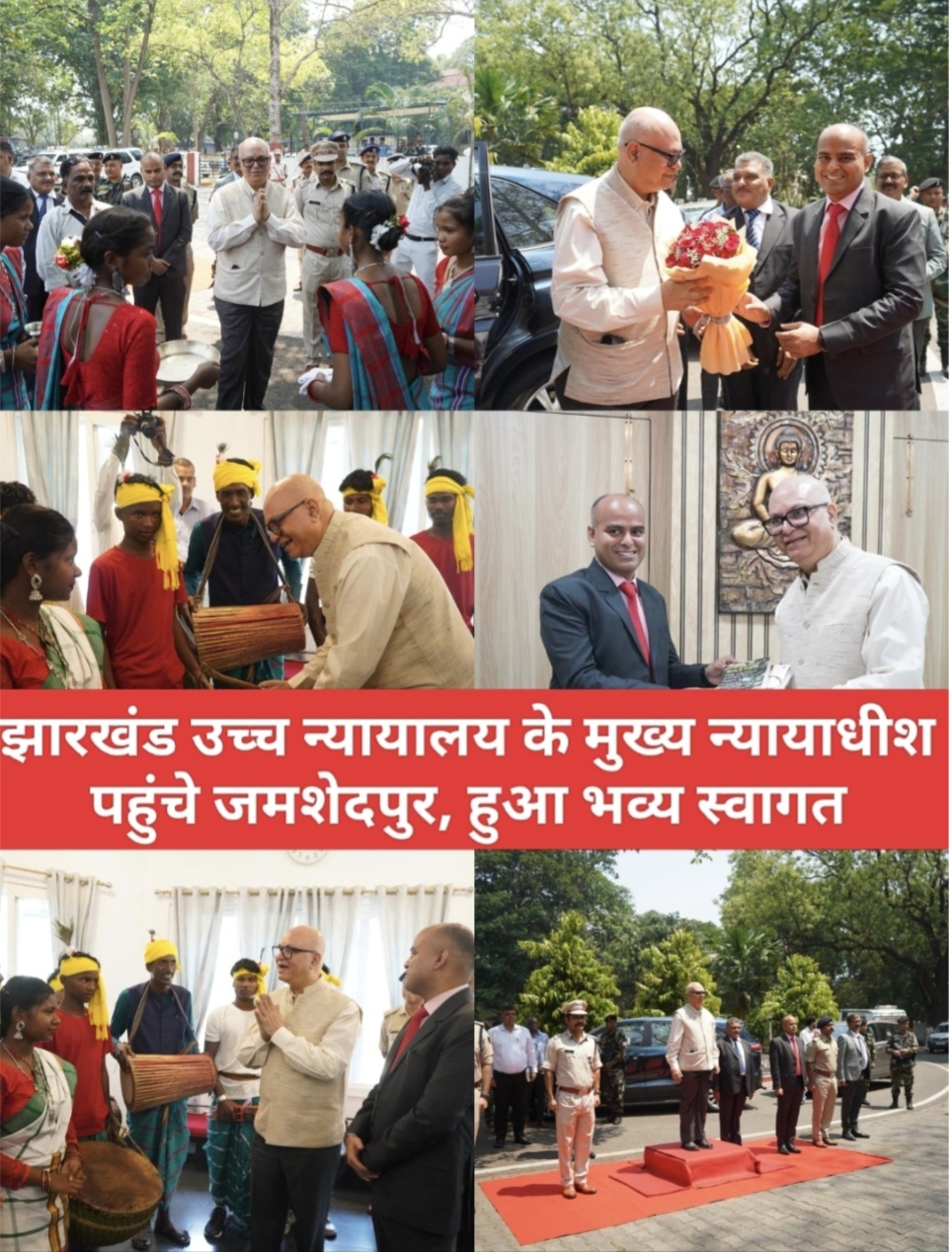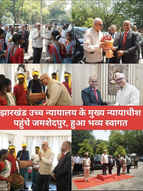 जमशेदपुर : जमशेदपुर आगमन पर माननीय न्यायमूर्ति श्री महेश शरदचंद्र सोनक, मुख्य न्यायाधीश, उच्च न्यायालय झारखंड का जिला प्रशासन की ओर से उपायुक्त कर्ण सत्यार्थी द्वारा पुष्पगुच्छ एवं पुस्तक भेंट कर स्वागत किया गया। इस अवसर पर जिला प्रशासन की ओर से माननीय मुख्य न्यायाधीश को गार्ड ऑफ ऑनर प्रदान किया गया।