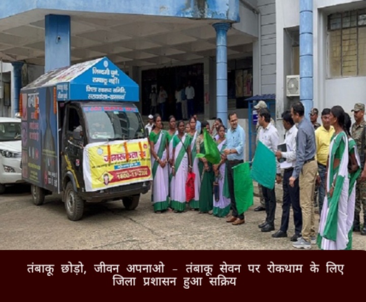 सरायकेला : विश्व तंबाकू निषेध दिवस के मौके पर समाहरणालय परिसर से उपायुक्त नितिश कुमार सिंह ने जागरूकता रथ को रवाना किया। यह वाहन जनसामान्य को धूम्रपान और तंबाकू से होने वाली बीमारियों के प्रति सजग करने के उद्देश्य से चलाया गया है। उन्होंने बताया कि यह रथ जिले के ग्रामीण क्षेत्रों एवं शहरी इलाकों में भ्रमण करेगा और ध्वनि संदेशों के माध्यम से नागरिकों को धूम्रपान नियंत्रण कानून (कोटपा 2003) एवं ई-सिगरेट प्रतिबंध अधिनियम 2019 की जानकारी देगा।