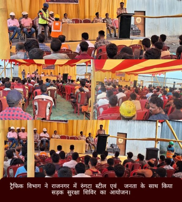 जिसमें काफी संख्या में लोगों ने भाग लिया।रूंगटा स्टील, एवं आम जनता को राजनगर में सड़क सुरक्षा को लेकर जनजागरूकता बढ़ाने के उद्देश्य से एक विशेष सड़क सुरक्षा शिविर का आयोजन किया गया। यह शिविर स्थानीय प्रशासन और ट्रैफिक पुलिस विभाग के इंस्पेक्टर अजय कुमार तिवारी के नेतृत्व में रुंगटा स्टील और जनता के सहयोग से आयोजित हुआ। कार्यक्रम में सड़क सुरक्षा के नियमों, हेलमेट और सीट बेल्ट के महत्व, ट्रैफिक सिग्नलों के पालन, और नशे में ड्राइविंग से होने वाले खतरों पर विस्तार से जानकारी दी गई। उपस्थित लोगों को जागरूक करने के लिए प्रजेंटेशन, वीडियो क्लिप और रोड सेफ्टी से जुड़ी प्रदर्शनी भी लगाई गई। साथ ही, सड़क सुरक्षा की शपथ भी दिलाई गई। कर्मचारियों और स्थानीय निवासियों की भागीदारी ने शिविर को सफल बनाया। रूंगटा स्टील प्रबंधन ने इस पहल के जरिए समाज में सुरक्षित यातायात व्यवस्था को बढ़ावा देने की अपनी प्रतिबद्धता दोहराई। यह शिविर जागरूकता फैलाने की दिशा में एक महत्वपूर्ण कदम है जिससे सड़क दुर्घटनाओं पर अंकुश लग सकता है।