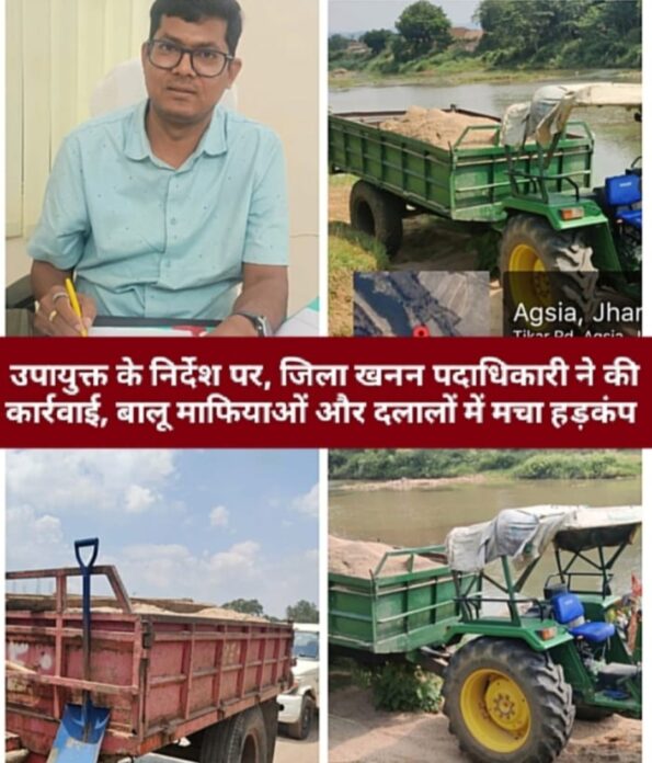 सरायकेला: सरायकेला खरसावां जिले के जिला उपयुक्त नीतीश कुमार सिंह के निर्देश पर जिला खनन पदाधिकारी द्वारा चलाए जा रहे छापामारी अभियान से बालू माफियाओं और दलालों में हड़कंप मचा हुआ है। उपायुक्त के निर्देश मिलने के बाद से लगातार जिला खनन पदाधिकारी ज्योति शंकर सतपथी द्वारा जिले के विभिन्न थाना क्षेत्रों में छापामारी अभियान की कार्रवाई की जा रही है, और गाड़ियों को पकड़कर एफआईआर दर्ज किए जा रहे हैं। जिले में अवैध खनन पर नकेल कसने को लेकर उपायुक्त के स्पष्ट निर्देशों के बाद जिला खनन पदाधिकारी ने सख्त रुख अपनाते हुए चौका एवं ईचागढ़ थाना क्षेत्रों में विशेष जांच अभियान चलाया। जिला खनन पदाधिकारी के नेतृत्व में गठित टीम ने बालू के अवैध भंडारण एवं परिवहन की शिकायतों के आलोक में चौका थाना क्षेत्र के पातकूम रोड पर औचक निरीक्षण के दौरान एक ट्रैक्टर को अवैध रूप से बालू लदे पकड़ा गया। टीम ने मौके पर ही वाहन को जब्त कर आवश्यक कानूनी प्रक्रिया प्रारंभ की। इसके बाद ईचागढ़ थाना क्षेत्र में दो अलग-अलग स्थानों पर स्थानीय पुलिस की सहायता से दो और ट्रैक्टरों को जब्त किया गया, जो अवैध रूप से बालू का परिवहन कर रहे थे।