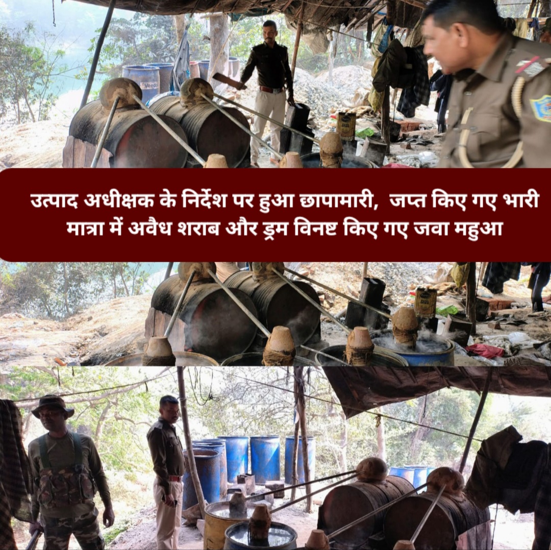 छापेमारी के क्रम में 700.00 kg जावा महुआ विनष्ट किया गया और 50.00 litre महुआ शराब ज़ब्त किया l दो संचालकों को चिन्हित किया गया है के विरुद्ध उत्पाद अधिनियम के तहत अभियोग दर्ज किया जाएगा l