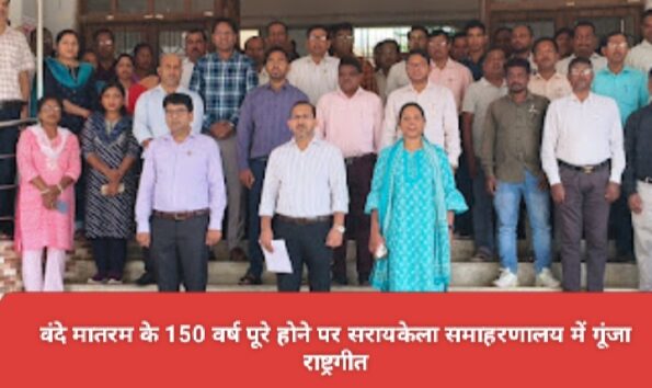 Saraikela (संजीव मेहता) : राष्ट्रीय गीत “वंदे मातरम” की रचना के 150 वर्ष पूरे होने के उपलक्ष्य में सरायकेला खरसावां जिला समाहरणालय प्रांगण में शुक्रवार को एक विशेष कार्यक्रम का आयोजन किया गया. कार्यक्रम की अध्यक्षता उपायुक्त नितिश कुमार सिंह ने की.