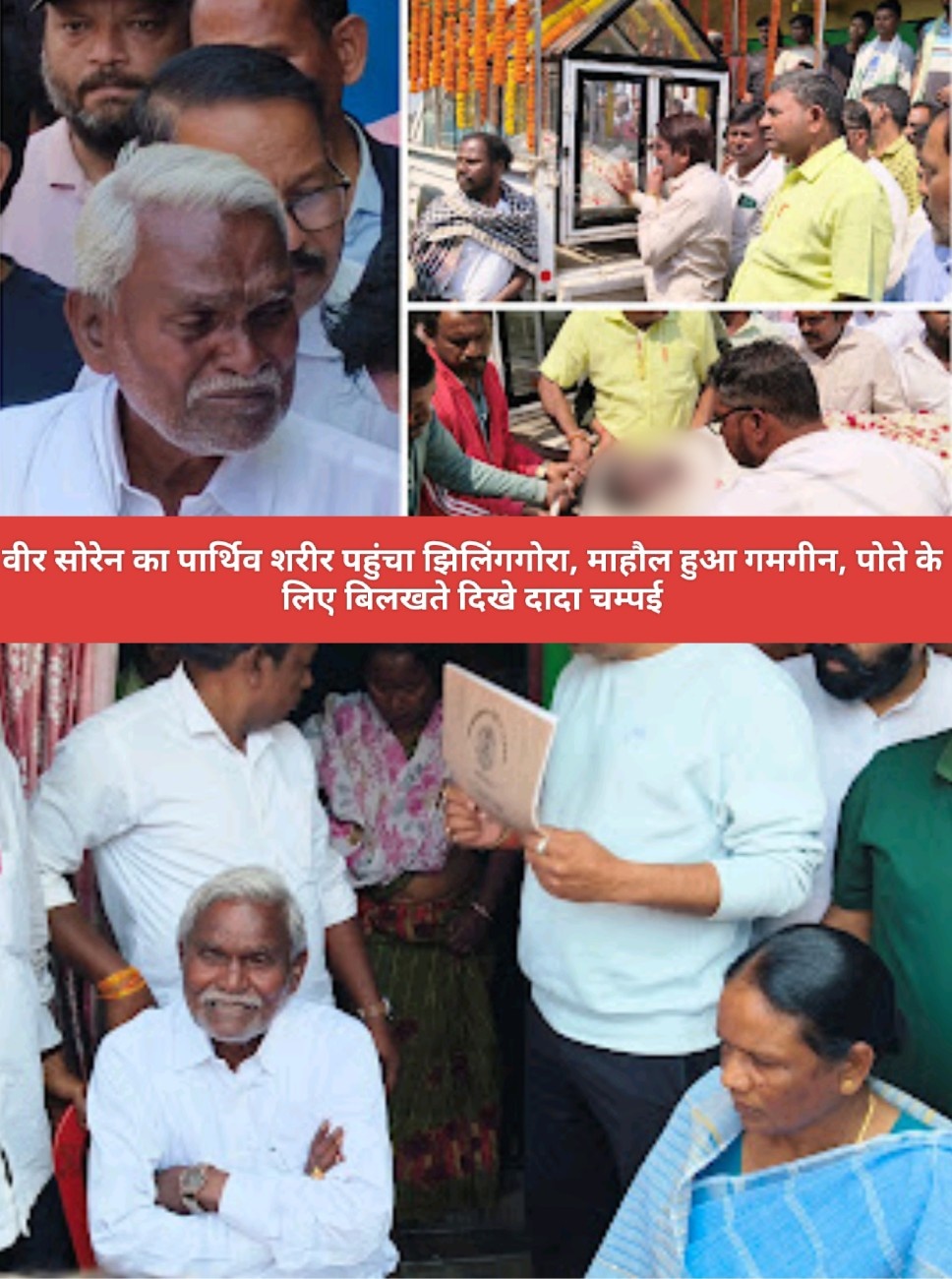 Saraikela (संजीव मेहता) : झिलिंगगोरा गांव में आज शोक का माहौल है. माहौल उस वक्त और गमगीन हो गया जब झारखंड के पूर्व मुख्यमंत्री चंपाई सोरेन के पोते वीर सोरेन का पार्थिव शरीर पैतृक आवास पहुंचा. जमशेदपुर स्थित टाटा मेन हॉस्पिटल से शव को गांव लाया गया, जहां अंतिम दर्शन के लिए बड़ी संख्या में लोग जुटे थे. इस दौरान पूर्व मुख्यमंत्री चंपाई सोरेन बेहद भावुक नजर आए. परिजनों का रो-रोकर बुरा हाल था और पूरे गांव में मातमी सन्नाटा पसरा हुआ है. दुख की इस घड़ी में सिंहभूम लोकसभा क्षेत्र की सांसद जोबा मांझी भी मौके पर पहुंचीं थी और शोक संतप्त परिवार को सांत्वना दे रही थीं.
