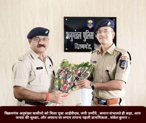 रोहतास: वर्ष 2022 बैच के तेजतर्रार आईपीएस अधिकारी संकेत कुमार ने रोहतास जिले के बिक्रमगंज अनुमंडल पुलिस पदाधिकारी (एसडीपीओ) के पद पर विधिवत रूप से पदभार ग्रहण किया। पदभार ग्रहण करते ही उन्होंने अनुमंडल में कानून व्यवस्था को चुस्त-दुरुस्त करने और अपराधियों पर नकेल कसने का स्पष्ट संदेश दिया।