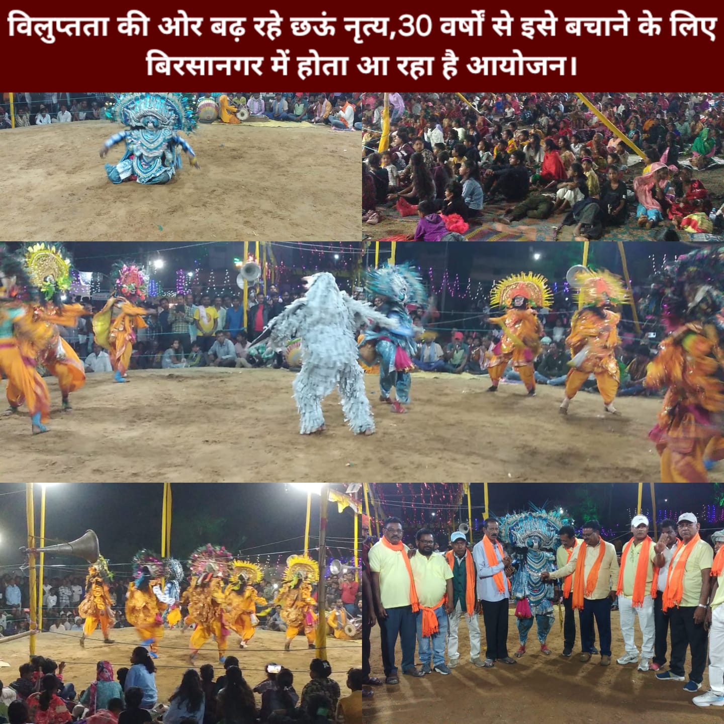 इस आयोजन को लेकर मंदिर कमिटी के अध्यक्ष बबलू गोप ने जानकारी देते हो बताया की, 1983 में इस मंदिर की स्थापना हुई थी इसके बाद से छोटे छोटे कार्यक्रम किया जाता रहा है, लेकिन 1995 से विभिन्न संस्कृति कार्यक्रमों के साथ विलुप्त होते छऊ नृत्य को यहां का हिस्सा बनाने का निर्णय लिया गया, उसके बाद से निरंतर छऊं नृत्य का कार्यक्रम पूरे बिरसानगर के लिए आकर्षण का केंद्र बनता गया,जिसे देखने के लिए बिरसानगर सहित आस पास से सैंकड़ों दर्शक इसे देखने के लिए पहुंचते है। इस वर्ष पुरुलिया सारीडीह से हेमसिंह महतो की टीम और बलरामपुर के स्वर्गीय डॉक्टर सुकेन की रॉयल छऊं टीम को आमंत्रित किया गया। जिनके द्वारा धार्मिक छऊ नृत्य प्रस्तुत किया गया। अध्यक्ष ने चिंता जताते हुए कहा कि वर्तमान आधुनिक समय में युवा और बच्चों में मोबाइल की ओर रुझान ज्यादा है, जिसे लेकर सनातन धर्म और अपनी संस्कृति बचाएं रखने के लिए इस तरह का कार्यक्रम करना काफी जरूरी है, जिससे अपनी धरोहर के बारे में जिज्ञासा बढ़ें,जिस तरह से वर्तमान में अपने पूर्वजों के कार्यों को अब तक लेते चले हैं इसी तरह आने वाले समय में भी युवा इस परंपरा को आगे बढ़ाने में सहयोग करें।