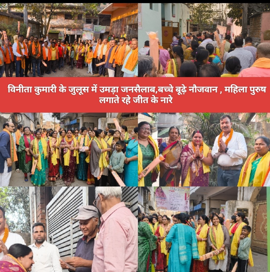 विनीता कुमारी ने कहा कि जनप्रतिनिधि बनने के बाद क्षेत्र की आवश्यकताओं को योजनाबद्ध तरीके से पूरा किया जाएगा। स्वयं को इस इलाके की बहू बताते हुए उन्होंने सेवा को अपना दायित्व बताया और मतदाताओं से जीतने की अपील की।