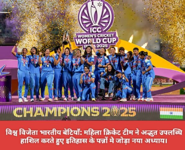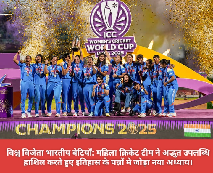प्रतिद्वंद्वी टीम पूरे प्रयासों के बावजूद 45.3 ओवर में 246 रनों पर सिमट गई। इस जीत के साथ भारतीय टीम ने 52 वर्षों का लंबा इंतजार खत्म किया। इससे पहले भारत 2005 और 2017 में फाइनल तक पहुंचा था, परंतु खिताब जीतने से चूक गया था। इस बार खिलाड़ियों ने अपनी एकजुटता, धैर्य और अनुशासन से साबित कर दिया कि भारतीय महिला क्रिकेट अब विश्व की सबसे मजबूत टीमों में शामिल है। यह ऐतिहासिक जीत न केवल क्रिकेट जगत के लिए बल्कि पूरे देश के लिए प्रेरणा का स्रोत बन गई है। इससे नई पीढ़ी की खिलाड़ी आगे बढ़ने का हौसला पाएंगी और भारत के लिए और भी बड़ी सफलताएं लाने की दिशा में कदम बढ़ाएँगी।
