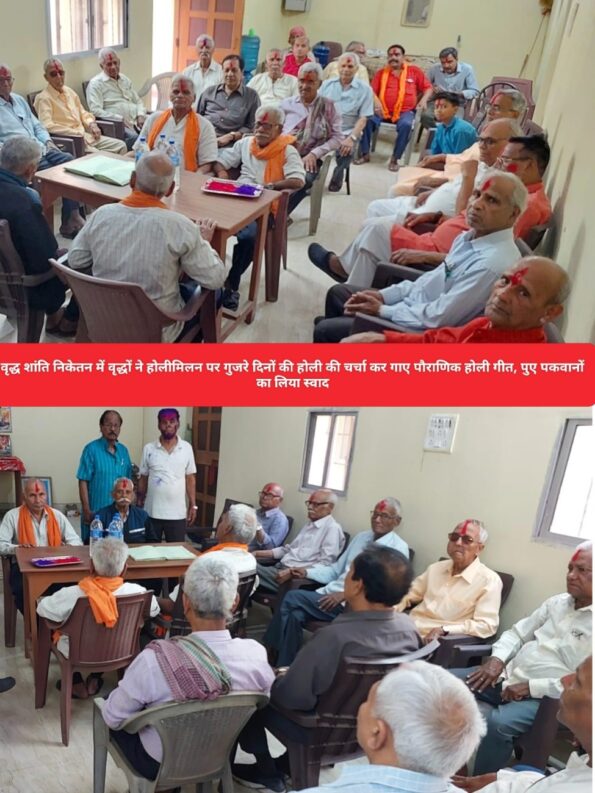 वृद्ध शांति निकेतन में रविवार को वृद्धों ने होलीमिलन के मौके पर गुजरे दिनों की होली की चर्चा कर होली के पौराणिक होली गीत गाये और पुए पकवानों का रसास्वादन किया. होली मिलन समारोह की अध्यक्षता अध्यक्ष चन्द्रमा पांडेय ने की, जबकि संचालन महासचिव निहार रंजन होर ने किया. इस दौरान निकेतन के वृद्धों ने एक दूसरे को अबीर गुलाल लगाकर बधाई दी और ढोल मंजीरे के धुन पर फगुआ गीतों का आनंद लिया.