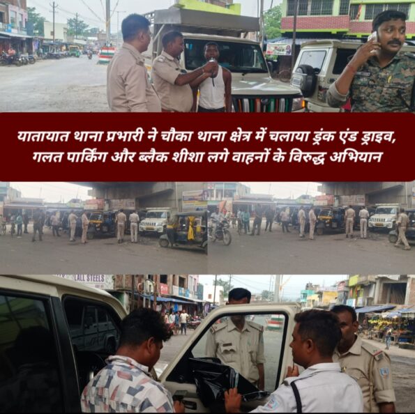 सरायकेला : सरायकेला-खरसावां जिले के चौका थाना क्षेत्र में यातायात थाना प्रभारी अजय तिवारी द्वारा ट्रैफिक नियमों के पालन कराने हेतु विशेष अभियान चलाया गया। यह अभियान चौका फ्लाईओवर के नीचे संचालित किया गया, जिसमें ड्रंक एंड ड्राइव, गलत पार्किंग और ब्लैक शीशा लगे वाहनों के विरुद्ध सख्त कार्रवाई की गई। इस दौरान कुल ₹17,000 का चालान काटा गया।